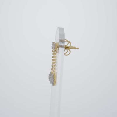 Effortlessly elegant for everyday wear, these diamond dangles add a refined sparkle to your look. A delicate chain suspends a double-halo round diamond cluster, creating a soft, radiant drop that moves beautifully with every step.
