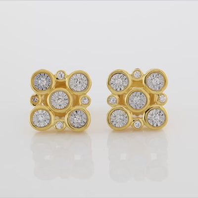 A cluster arrangement of round motifs with brilliant-cut diamonds set in a floral lattice pattern. The gold base and circular geometry create a harmonious balance of symmetry and sparkle, giving it a traditional yet contemporary aesthetic, perfect for festive and elegant occasions.