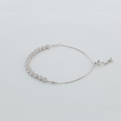 This elegant chain features a continuous row of round bezel-style stations, each crafted with a delicate cutout halo pattern that adds texture and dimension. The circle pattern adds flow, while the open details keep it light and balanced.