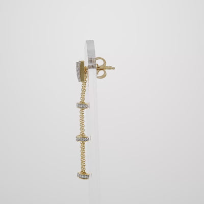 Understated sparkle, elevated finish. These long danglers feature a sleek chain with three bezel-set diamonds aligned in a vertical drop, creating graceful movement and a refined sparkle.