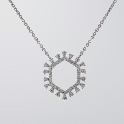 The necklet features a modern hexagonal halo design, encircled with sparkling diamonds that give it a striking yet delicate appeal.